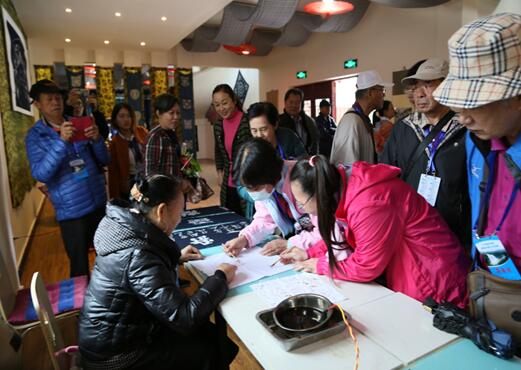 交流团到安顺市开发区星光社区服务中心交流,实地参观星光社区的科普体验馆、自愿者服务站、禁毒教育基地和综合文化服务中心等基础设施建设,同社区负责人深入交流,了解基层社区日常管理运作。交流团受到正在排练的艺术合唱团的热烈欢迎,现场为交流团献上苗家古老动听的《后山苗音》,展示了安顺苗族别具一格的文化魅力。交流团到三合苗寨参访苗寨的美丽乡村建设,考察苗寨依托苗族文化资源,按照苗族建筑特色,将苗寨内所有基础设施融入蜡染元素进行设计改造突出苗寨文化,实现了民族文化保护与“美丽乡村”建设相结合。台湾同胞走进三合苗寨的蒙多彩苗族蜡染文化传承基地,感受神奇蜡染技艺,动手体验蜡染画作,捕捉现代工笔画与蜡染艺术相碰撞的火花,沉浸在苗族农耕文化丰富多彩的民族风情中。
