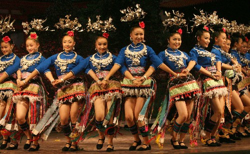 11月6日,多彩贵州农民艺术团的演员在苏州市金阊区文化馆表演民族歌舞。新华社发(戚振林 摄)