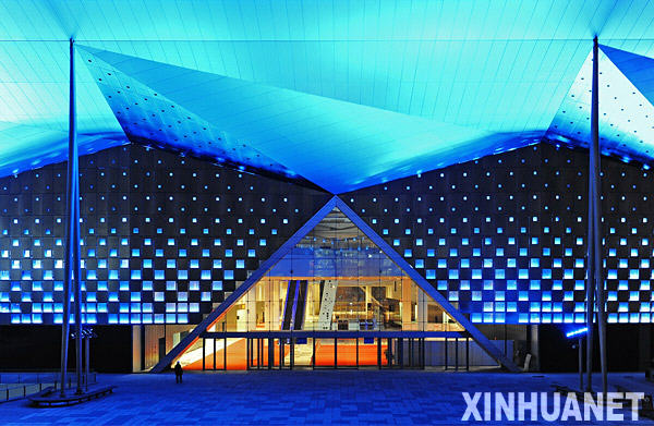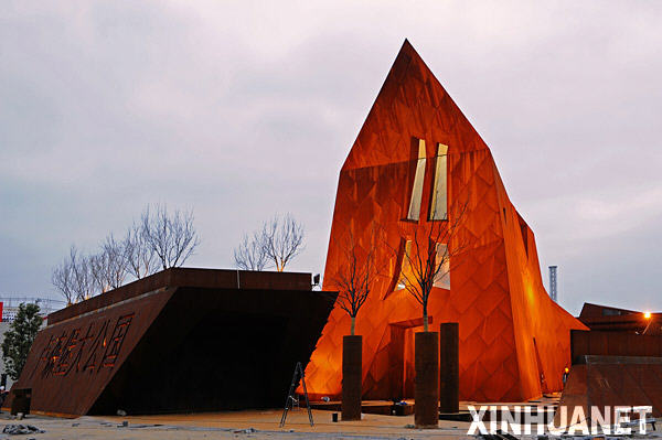 3月7日拍摄的进行灯光调试的上海世博会卢森堡馆。上海世博会日益临近,世博园工地加快施工进度,已完工的场馆抓紧进行灯光调试。新华社发(郭长耀 摄)