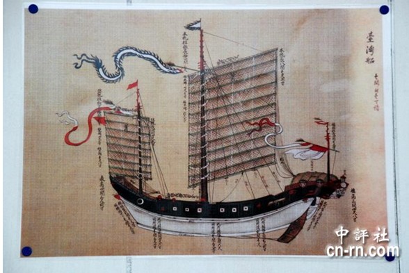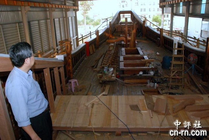 在日本平户找到的17世纪台湾船的古图已经以1:1的比例在台南安平复原重现。(中评社 赵家麟摄)
