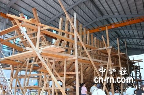 17世纪台湾船的甲板工程已接近完工。(中评社 赵家麟摄)