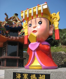 据“中央社”报道,游客到宜兰北方澳进安宫远远就可看到庙旁一尊3米高的Q版“海军妈祖”,模样可爱逗趣,大家都忍不住发出赞叹,争相留影纪念。