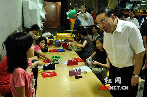 梅克保在卓兰镇农会的水果包装车间,和暑期帮妈妈打工的小学生亲切聊天。