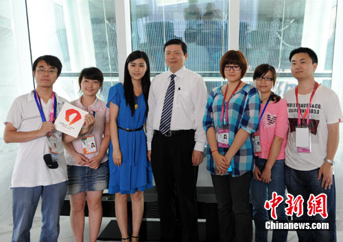 8月12日,台湾馆馆长叶明水就台湾馆的设计理念、亮点等话题与上海世博会注册大学生记者进行了充分交流并合影留念。110名上海世博会注册大学生记者是从中国29个省份415所高校的1540人中层层选拔出来的,这是中国大学生记者第一次以正式注册记者的身份,深度参与大型活动的宣传和推广,也是世博会百年历史上第一次出现大学生记者的身影。