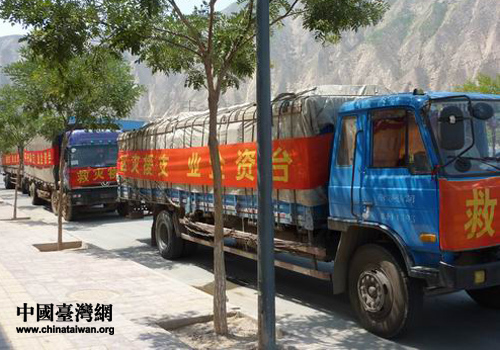 在甘肃省台办经济联络处处长刘国保带领下,由4辆大卡车组成的车队装载着68吨救灾物资运往灾区。一路上风餐露宿、昼夜兼程,克服大雨、泥石流等恶劣情况,于11日下午顺利将救灾物资送达两河口救灾物资接收点,为灾区人民献出自己的力量。(中国台湾网、甘肃省台办联合报道)
