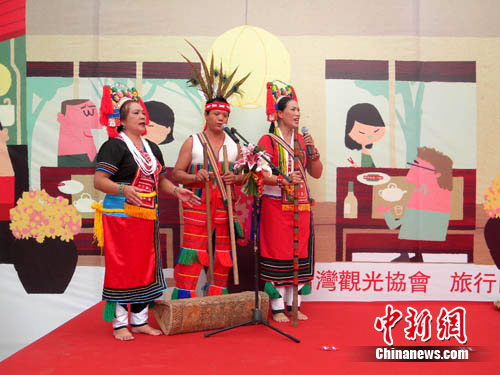 18日,台湾海峡两岸观光旅游协会(简称台旅会)在南京举行“台湾旅游嘉年华”。这是台旅会在大陆首度举办的户外嘉年华推广活动。在此间上午的嘉年华盛会上,台湾艺术家们热情火辣的原住民歌舞表演,将现场气氛推至高潮。