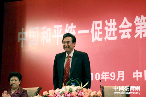 9月24日上午,海峡两岸关系协会会长陈云林在杭州出席中国和平统一促进会第九次海外统促会会长会议,为240余名与会代表作了两岸关系发展的专题报告,报告开始前,陈云林向与会人员致意。(中国台湾网 杨丽 摄)