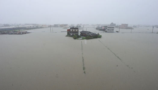 台风“梅姬”(大陆称“鲇鱼”)暴风圈外围已接触陆地,带来惊人降雨,21日北台湾宜兰县一片水乡泽国。图片来源:“中央社”