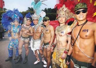 同志坐在花车上妖娆演出,抢尽路人目光。图片来源:台湾《联合报》