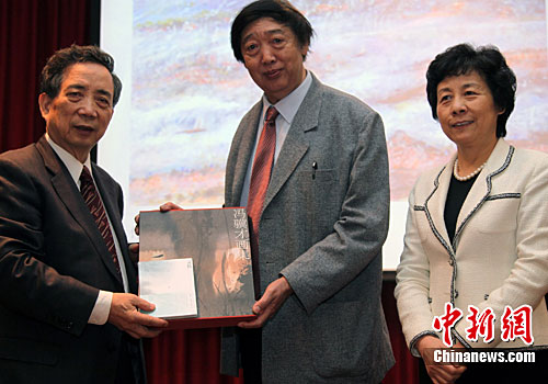 开明画院暨叶圣陶研究会14日上午在台湾艺术大学与台湾艺术家举办“两岸书画交流与前瞻”座谈会。出席座谈会的有40多位两岸知名书画艺术家,包括天津大学教授、叶圣陶研究会理事、开明画院院长冯骥才,叶圣陶研究会理事、江苏省文联副主席、开明画院副院长言恭达,叶圣陶研究会理事、岭南画派纪念馆馆长、开明画院副院长陈永锵;中央美术学院中国画学院院长唐勇力,台湾艺术大学校长黄光男,台艺大书画艺术系教授兼美术学院院长林进忠,台艺大书画艺术系教授兼系主任蔡友,长荣大学美术系教授苏峰男,华梵大学美术系前系主任黄智阳等。