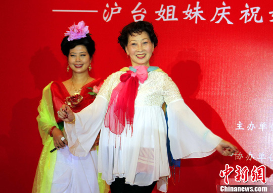 3月5日,“丝巾皇后”胥佩娜(右)在上海向女台商、台商太太演绎丝巾的百余种系法。当日上海市台联和妇联共同举办“沪台姐妹庆祝妇女节联欢会”,100多位沪台姐妹们欢聚一堂,分享了她们在上海的多彩人生和成功经历。中新社发 潘索菲 摄