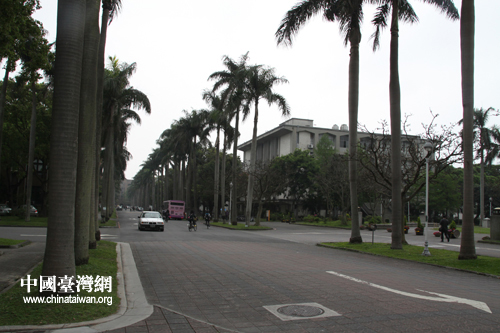 2011年4月10日,大陆高校参访团到访台湾大学,图为台大椰林大道。(中国台湾网 杨永青 摄)