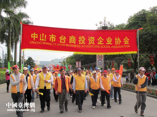 中国台湾网2月13日中山消息 2012年农历正月十五,中国传统节日元宵节。广东省中山市一年一度慈善万人行活动如期举行,作为中山市慈善事业蓬勃发展的见证者和参与者,中山市台商协会以及广大台商朋友又一次用行动表达对中山慈善事业的真诚支持。由中山市台商协会会长、副会长、秘书长以及台商代表等共80人组队,兴致昂然地参加了参加慈善万人行。