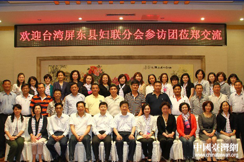 台湾屏东县妇联分会主任委员林蔡凤梅感谢郑州市妇联的精心安排与接待,并简要介绍了屏东县各界妇女组织的主要工作,她邀请郑州市妇联到台湾屏东县参观交流。双方还互赠纪念品并合影留念。