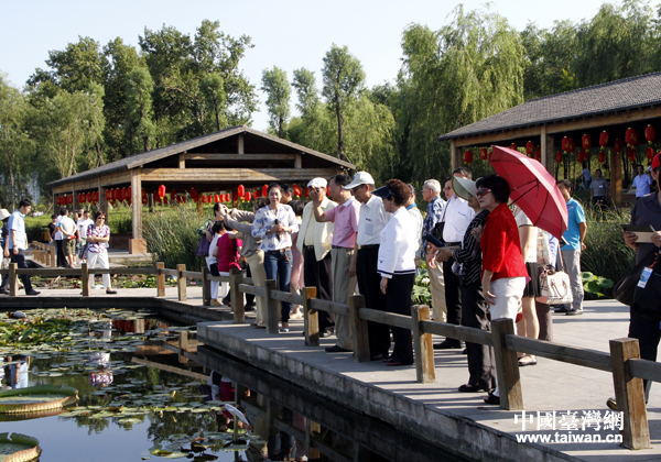 24日,江丙坤和夫人,以及参加活动的台湾嘉宾在铁岭市委书记吴野松的陪同下,参观了铁岭莲花湖湿地森林公园。(中国台湾网 普燕 摄)