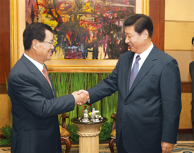 | 十月六日,中共中央总书记习近平在印度尼西亚巴厘岛会见台湾两岸共同市场基金会荣誉董事长萧万长一行。 |