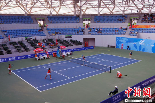 第六届东亚运动会网球项目男女团体决赛10月7日在天津国际网球中心进行,中华台北队男、女团体分别战胜韩国男子团体和中国女子团体,为中华台北代表团赢得双金。