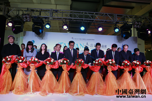“台湾文创精品馆”7日在第八届北京国际文化创意产业博览会上正式开馆,图为与会嘉宾为开馆剪彩。(中国台湾网 王伟 摄)