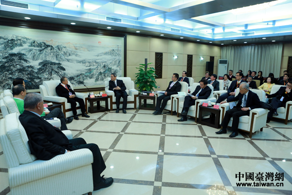 张志军会见第四届ECFA海峡两岸暨香港民间经贸合作论坛代表。(中国台湾网 于斯文 摄)