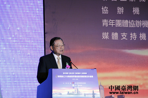 9日下午,第四届ECFA海峡两岸暨香港民间经贸合作论坛在北京举行。台湾“三三企业交流会“会长、前海基会董事长江丙坤出席论坛并致辞(中国台湾网 王伟 摄)