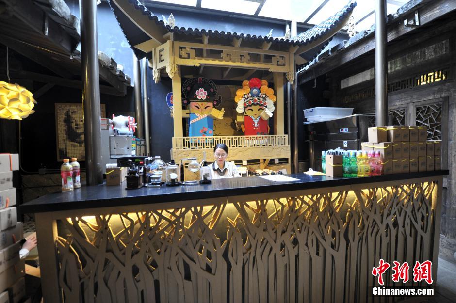 12月23日,福建首家台湾纸箱王创意园落户福州三坊七巷,创意园里结合了福州三坊七巷各个景点,打造一个梦幻的纸世界。图为纸制福州三坊七巷水榭戏台。吕明 摄