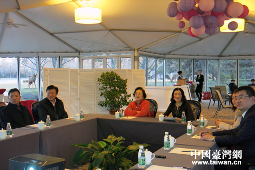 林文漪观看了企业宣传图片和影像资料,听取了企业负责人黄紫玉对企业经营情况的介绍,并就两岸关系和平发展形势及岛内情况进行交流。林文漪指出,北京紫玉乡村俱乐部是台商在北京较早进行投资的大规模生态品牌,市场发展良好,社会影响较大。她说,黄紫玉女士不仅在大陆投资兴业,更是穿梭于两岸的和平发展的使者,在岛内政界各党派中获得很多信任,为促进祖国和平统一奔走。