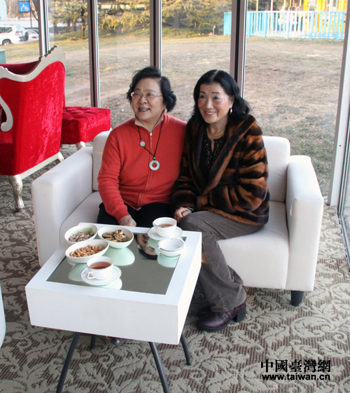 全国政协副主席、台盟中央主席林文漪1月17日前往北京紫玉乡村俱乐部走访慰问,表达台盟中央对台资企业发展的关心,并向在京台商致以新春的祝福。图为林文漪与北京紫玉乡村俱乐部负责人黄紫玉。(中国台湾网 王怡然 摄)