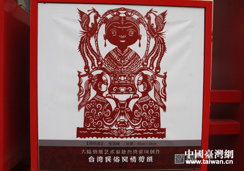 台湾民俗风情剪纸作品《拜妈祖》。(中国台湾网 郭庆娜 摄)
