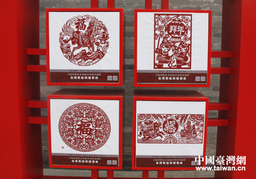 前门大街上年味浓浓的剪纸作品。(中国台湾网 郭庆娜 摄)