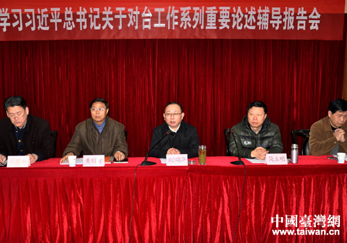 中国台湾网3月4日南昌消息 3月4日,省台办召开学习习近平总书记关于对台工作系列重要论述辅导报告会。省台办主任欧阳泉华作辅导报告,省台办巡视员简立明主持大会,省台办副主任黄朋青传达了党的十八大以来,习近平总书记关于对台工作的系列重要论述,省台办副主任徐建星、省台联会长曾鲁台出席会议。省台办机关全体干部职工参加会议。