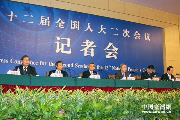 全国人大二次会议新闻中心11日上午举行记者会。中国人民银行行长周小川,中国银行业监督管理委员会主席尚福林,中国证券监督管理委员会主席肖钢,中国保险监督管理委员会主席项俊波,中国人民银行副行长、国家外汇管理局局长易纲五位嘉宾就“金融改革与发展”的相关问题回答了中外记者的提问。(中国台湾网高斯斯 摄)