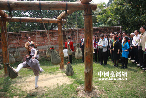 两岸校长参观广东省华侨职业技术学校禅武中心,体验中华武术文化。(中国台湾网发 王羽威摄)