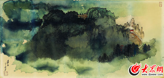 图为艺术展展出的张大千1974年创作的国画《山寺》。