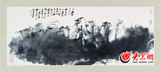 图为艺术展展出的张大千1979年创作的国画《黄山》。