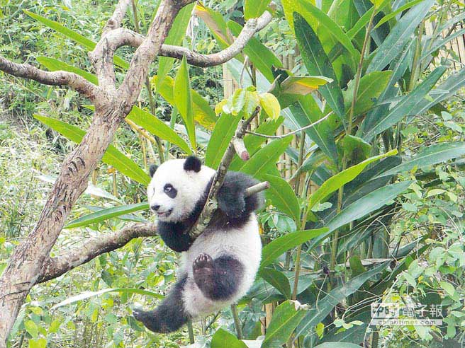 中国台湾网4月15日消息 据台湾《中国时报》报道,台北市立动物园的大熊猫宝宝“圆仔”282日龄,体重约25公斤。台北动物园表示,圆仔正处在调皮捣蛋年龄,看到树干就情不自禁爬上去,爬到树顶后不想下来,有时用双脚勾住树枝,放开双手让身体迅速倒挂在树上,总是让游客替它捏把冷汗。