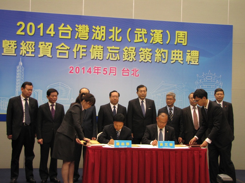 2014台湾·湖北(武汉)周活动启动仪式上,湖北省商务部门与台湾贸易中心签署合作备忘。吴亚明摄
