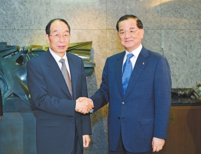 九日,福建省委书记尤权在台北市会见中国国民党荣誉主席连战。张永定摄