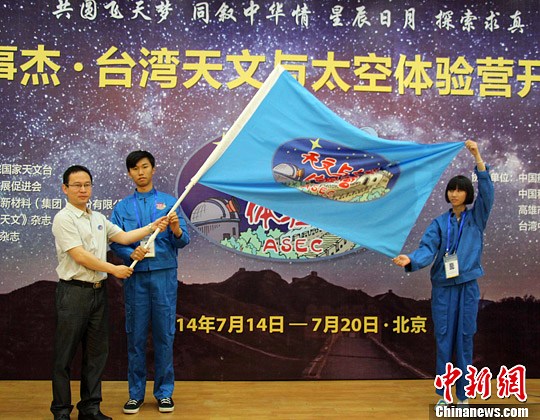 7月15日,“2014年杰事杰·台湾中学生天文与太空体验营”在北京开营。24位来自台湾的大中学生和15位大陆大中学生将亲身体验航天员的训练项目、品尝航天食品。