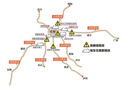成都城区主干道、火车站、客运站、大型商场、乡镇逢赶集道路、主要国省道、高速公路进出口、旅游景点等易出现客流、车流较大的趋势。