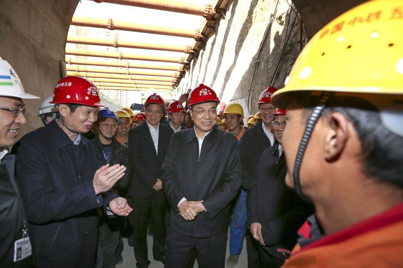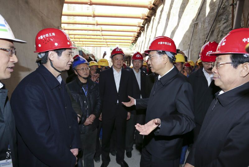 14日,李克强来到贵阳轻轨1号线施工现场,考察城市基础设施建设。总理戴上安全帽走进隧道,询问工程进度。多数施工者来自农村,李克强称赞他们是城市功臣。他叮嘱省领导,等这条轻轨修通后,你们一定要请回这些一线建设者,乘坐首班列车。