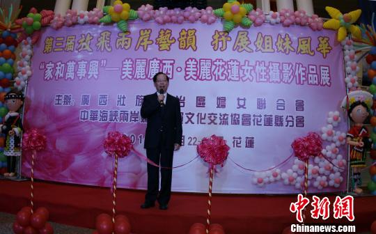 危朝安在开展仪式上说,“两岸一家亲,桂花亲上亲”,多年来,广西与花莲越走越近、越走越亲,特别是两岸各界妇女作为两岸民间交流的重要力量,广泛深入的开展交流合作,为深化桂台经贸文化交流合作发挥了不可替代的作用。这次以“家和万事兴”为主题的女性摄影作品展,非常有意义,办得非常成功。希望广西与花莲的姐妹们进一步加强交流,为促进桂台交流合作打造新平台,提供新经验,作出新贡献。