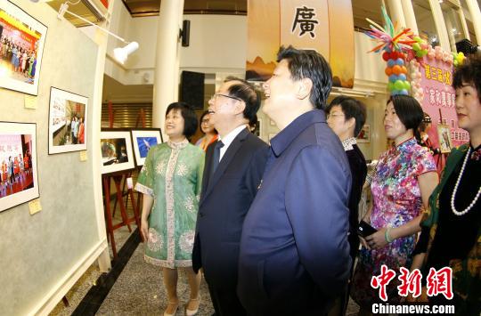 中共广西壮族自治区委员会副书记危朝安(左二)、花莲县长傅崐萁(左三)一同观展。 张秀清 摄