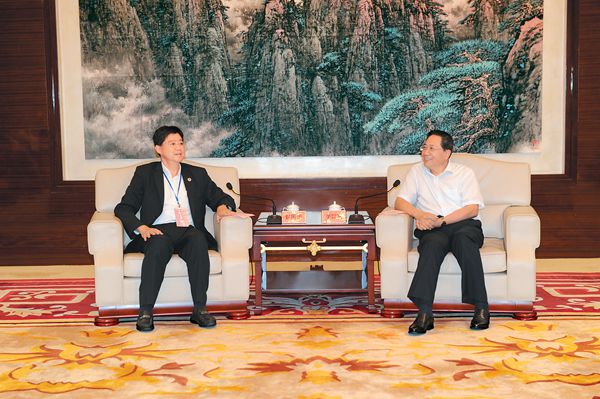 6月26日,代省长李锦斌在合肥稻香楼宾馆会见全国台企联副会长翟所领一行。本报记者 杨竹 摄
