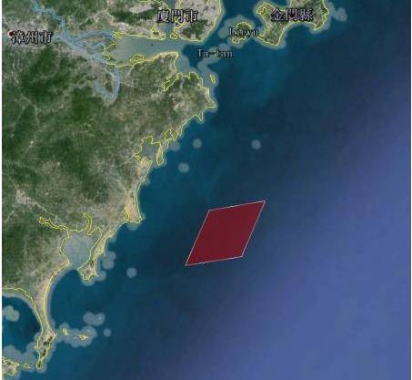 据中国海事局网站消息,解放军9月11日至13日15时至17时在台湾海峡以下四点连线范围内24-42.17N/118-43.78E、24-44.78N/118-47.67E、24-40.95N/118-49.07E、24-38.13N/118-45.00E进行实弹射击军事演习,射击高度8000米,禁止驶入。