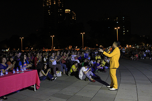 表演在高雄市文化中心广场举行。表演开始前,慕名前来观看表演的人们已经把广场围了个水泄不通。随着表演进行,越来越多的人们围了过来,不仅现场准备的座位座无虚席,连地上都坐满了人。据不完全统计,当晚到场的观众达一千多人。
