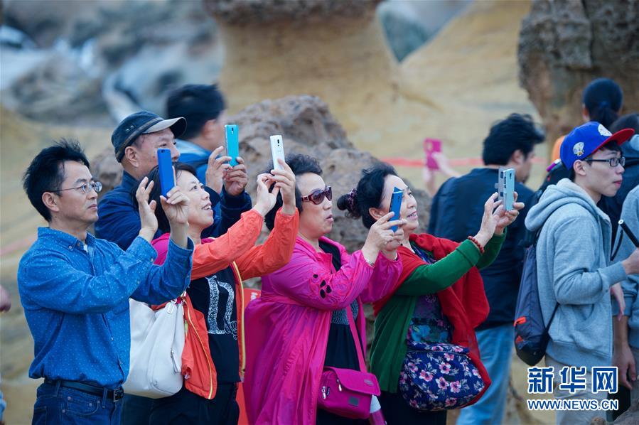 大陆游客在台湾野柳地质公园内用手机拍照。新华社记者姜克红 摄