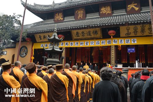 上海玉佛禅寺举行祈福超荐法会。(上海市台办 葛凤章 摄)