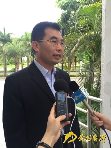 珠海市人民政府台湾事务局局长曾谷接受记者采访(林舒意 摄)