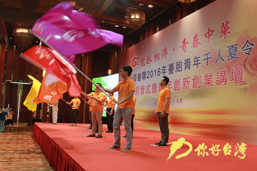 开营仪式上,全国人大常委、全国台联党组书记苏辉致欢迎词,宣布“2 01 6年台胞青年千人夏令营正式开营”。国务院台湾事务办公室副主任龙明彪,海峡两岸关系协会副会长孙亚夫,中央统战部三局局长、中华海外联谊会秘书长刘玉江,全国青年联合会副秘书长达娃次仁,教育部港澳台事务办公室常务副主任赵灵山为夏令营授旗。