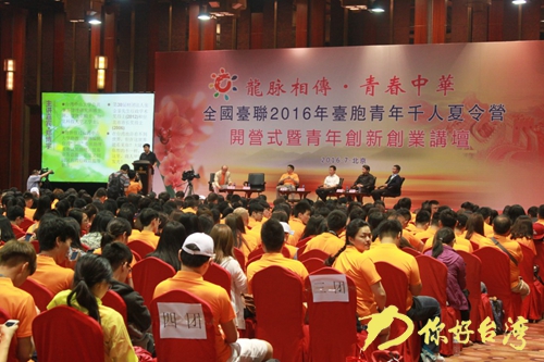 开营仪式后,台胞青年千人夏令营“青年创新创业讲坛”隆重举行,由阿里巴巴集团副总裁、阿里研究院院长高红冰,创毅科技集团董事长张辉,途牛旅游网首席执行官于敦德,北京鑫记伟业食品集团有限公司副总裁黄国书,北京创业公社投资有限公司品牌运营部高级经理兼台湾专区负责人郑博宇等著名企业负责人和在陆创业成功的台商台生代表等,围绕“青年创新创业”的主题作了精彩的演讲和对谈。
